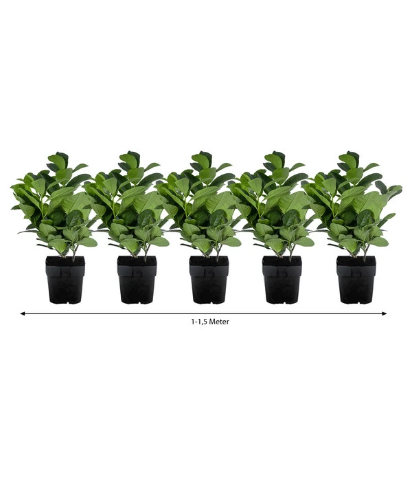 Die fünf Pflanzen Kirschlorbeer ‘Etna‘ lassen sich wunderschön in viele Gartensituationen integrieren. Jede Kirschlorbeerpflanze macht sich als Solist ausgezeichnet oder bildet zusammen mit anderen eine üppige Buschgruppe. Der Kirschlorbeer ‘Etna‘ eignet sich sogar als Formschnittgehölz, so dass Sie mit der Gartenschere kreativ werden können. Sehr dekorativ sind auch Kombinationen mit Ziergehölzen wie Rhododendren und Hortensien, die das Blätterpotpourri mit ihren leuchtenden Blüten bereichern.