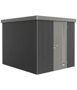 Das Biohort Gerätehaus Neo 3B hält aufgrund seiner enormen Stabilität Windstärken von bis zu 12 stand und das Dach trägt problemlos eine Schneelast bis zu 150 kg/m². Was an den stabilen Wänden aus feuerverzinktem, Polyamid-einbrennlackiertem Stahl und der hochwertigen Konstruktion der einzelnen Paneele liegt. Im Inneren besitzt es eine sichtbare Holzdecke, die dank ihrer hygroskopischen Eigenschaften die Luftfeuchtigkeit auf natürliche Weise reguliert. Zwei Regenfallrohre und Kleinteile sowie Schrauben aus Edelstahl runden das Leistungspaket perfekt ab – inklusive einer 20-Jahre-Herstellergarantie.