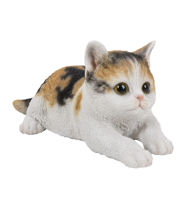 Wenn Sie Katzen lieben, werden Sie von dem in liegender Position dargestellten süßen Polyresin-Kätzchen aus dem Hause Dehner sicherlich ganz begeistert sein. Der natürliche Look und das lieblich freundliche Gesichtchen kommen dank der handbemalten Details besonders hübsch zur Geltung. So kann der nachempfundene Schmusetiger Ihren Innen- und Außenbereich auf besonders charmante Art zieren. Legen Sie ihn doch zum Beispiel auf Ihre Küchen- oder Wohnzimmerfensterbank, er kann Ihnen ein steter Blickfang im Alltag sein. Bestimmt finden auch Ihre Familie oder Ihre Gäste sofort Gefallen an dem bezaubernden Dehner Polyresin-Kätzchen.