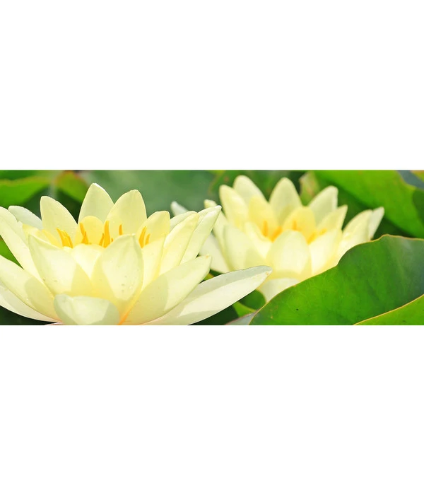 Wie die Sterne am dunklen Nachthimmel leuchten die hellgelben Blüten der Seerose ‘Chromatella‘ vor dem Hintergrund der dunkelgrünen Blätter. Ein Anblick mit einer fast magischen Wirkung! Von ihrem ersten Auftritt im Jahre 1887 durch den berühmten Seerosenzüchter Joseph Bory Latour-Marliac gehört die Seerose ‘Chromatella‘ bis heute zu den besten und beliebtesten Sorten, die außerdem mit einer zuverlässigen Winterhärte punkten kann. Das Beste aber sind natürlich die prächtigen, schalenförmigen Blüten, die einen Durchmesser von 10-12 cm erreichen können und nicht nur mit ihrer eleganten Erscheinung Aufsehen erregen, sondern die Luft mit einem zarten Duft erfüllen. Ein weiterer Pluspunkt ist natürlich auch die lange Blütezeit. Den ganzen Sommer, von Juni bis September, wird Blüte auf Blüte über den runden Blättern erscheinen und jeden Teichgärtner mit Freude und Stolz erfüllen.