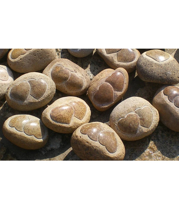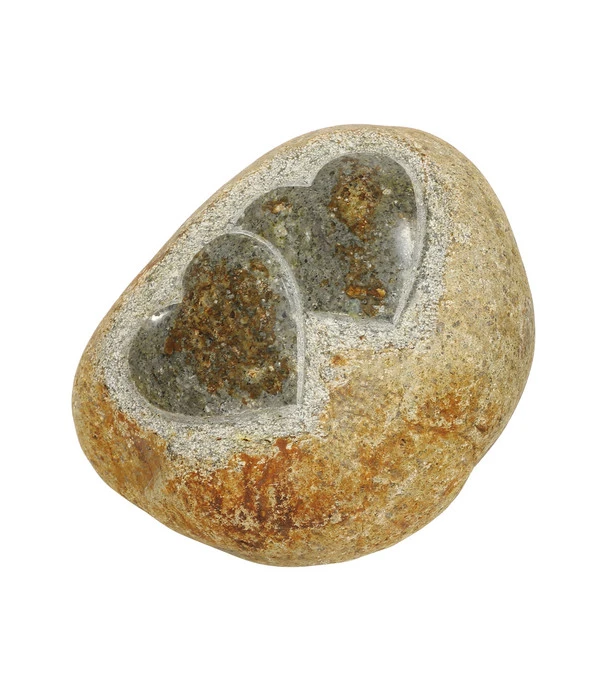 Kann man immerwährende Liebe schöner symbolisieren als mit zwei Herzen, die in Stein gemeißelt sind? Seit den Zeiten der Minnesänger, die mit ihren Liebesliedern versuchten das Herz einer Dame zu gewinnen, wird in unserer Kultur das Herz als Sitz der Gefühle und Symbol für Liebe gesehen und erfreut sich bis in moderne Chat-Foren hinein ungebremster Beliebtheit. Aber wirklich tiefe Gefühle drückt man am schönsten aus, wenn sie sich in Elementen manifestieren, die nicht schnell vergänglich sind, sondern die Aura der Ewigkeit in sich tragen. Wie dieser Stein mit den zwei Herzen. Der schöne Stein ähnelt einem Flusskiesel, der schon seit Jahrtausenden im fließenden Wasser lag, das ihm im Laufe der Zeit die harmonische runde Form verliehen hat. Der Stein mit den zwei Herzen ist eine Liebeserklärung, wie sie schlichter und zugleich aussagekräftiger kaum sein kann, zumal der Stein mit den zwei Herzen auch andeutet, dass die Liebe ‚ewig‘ halten wird.