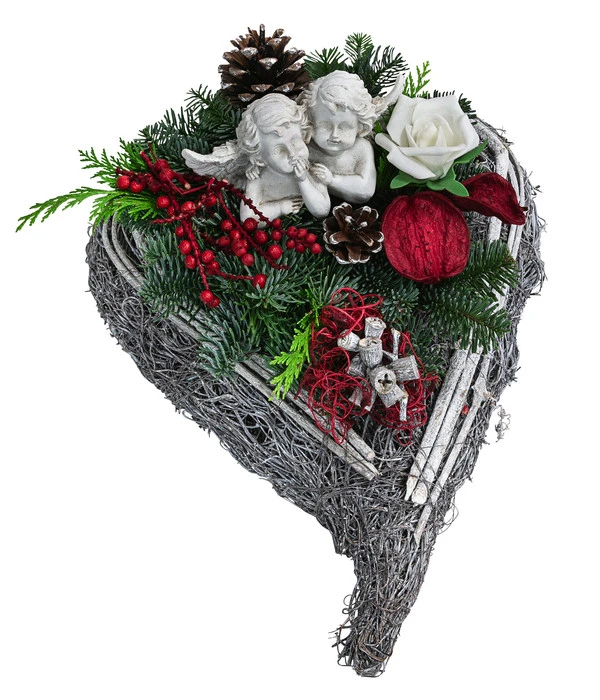 Grabgesteck, Herzförmig, Rot, Ca. B30/H25/T20 Cm