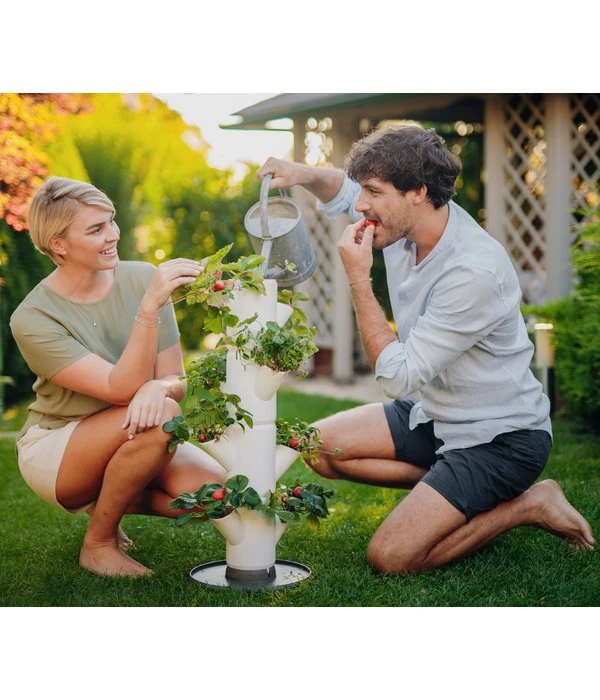Sie haben eine Vorliebe für Erdbeeren und pflanzen Ihre Lebensmittel nach Möglichkeit gerne selbst an? Dann ist der Gusta Garden Erdbeerbaum Sissi Strawberry Starter genau das Richtige für Sie. Dabei handelt es sich um eine platzsparend designte, vertikale Konstruktion aus witterungsbeständigem, recycelbarem Material, die in der EU hergestellt wird und zum Beispiel auf dem Balkon, der Terrasse oder im Garten zum Einsatz kommen kann. Der frei platzierbare Erdbeerbaum Sissi Strawberry Starter von Gusta Garden ist ein echter Eyecatcher, dessen durchdachtes, cleveres Design Ihr Obst und Co. darüber hinaus effektiv vor Schädlingen schützt.
