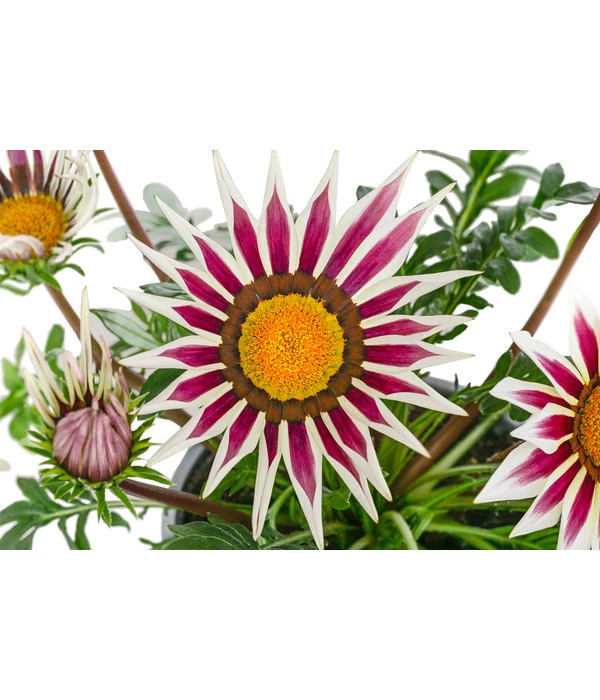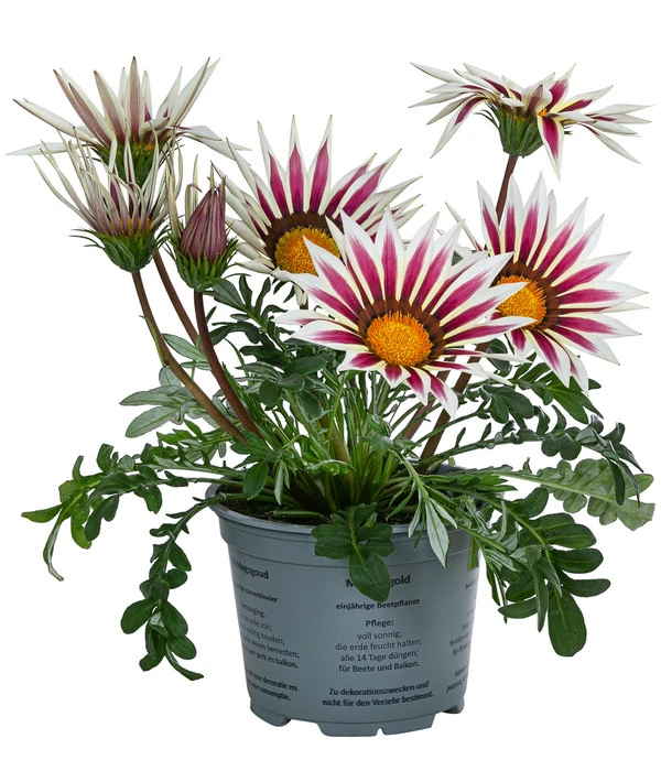 Die Gazanie ist nicht die einzige Beetpflanze, die auch bei längerer Trockenheit und Hitze ihre Blüten in voller Pracht präsentiert. Suchen Sie passende Pflanzpartner, die lieber etwas sparsamer gegossen werden sollten? Dann versuchen Sie es doch mal mit den ebenso aufrecht wachsenden Kapkörbchen oder Margeriten. Für einen leicht überhängenden Charakter sorgen Portulakröschen oder auch Husarenknöpfe. Durchstöbern Sie einfach unseren Shop und lassen Sie Ihrer Kreativität freien Lauf.
