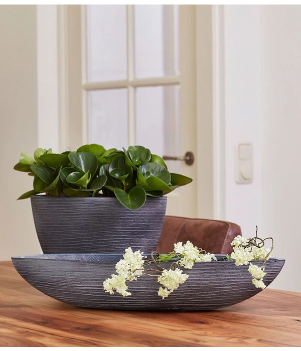 Die Peperomie gehört zur Gattung der Pfeffergewächse, deshalb ist sie auch unter den Namen Zwerg- oder Zierpfeffer bekannt. Es gibt etwa 1.600 Peperomia-Arten und jede dieser Sorten hat ihren ganz eigenen Look. Während sich die einen, in einem kräftigen Grün präsentieren, zeigen andere rote bis braune, oder sogar zweifarbige Blätter. Aber nicht nur in der Blattfarbe unterscheiden sich die verschiedenen Arten, auch die Blattform- und struktur ist enorm vielfältig – ob klein und rund oder lang und spitz, dünn bis fleischig dick, glatt oder gerunzelt, die Peperomie hat alles im Repertoir. Dieser Zwergpfeffer hat kurzgestielte, eiförmige Blätter, die in saftigem Grün glänzen. Die leicht sukkulenten Eigenschaften machen ihn obendrein zu einer pflegeleichten Zimmerpflanze.