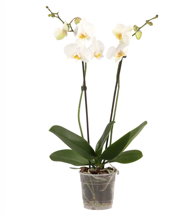 Arrangieren Sie die Schmetterlingsorchideen ganz einfach selbst. Bei Dehner gibt es exklusive Orchideenübertöpfe, die die Silhouette dieser edlen Pflanzen zusätzlich unterstreichen. Ein breites Sortiment an Zubehör, wie Orchideenklammern oder -stäbe, finden Sie in unserem Online-Shop auf Dehner.de, oder im Markt in Ihrer Nähe. In Kombination mit Farnen, Zierspargel oder Zimmerbambus können Sie sich sogar ein Stück tropisches Gefühl in Ihr Wohnzimmer holen! Ob nun für Ihre Fensterbank, oder als Geschenk zu Muttertag oder zum Geburtstag, die Schmetterlingsorchidee zaubert jedem ein Lächeln ins Gesicht.