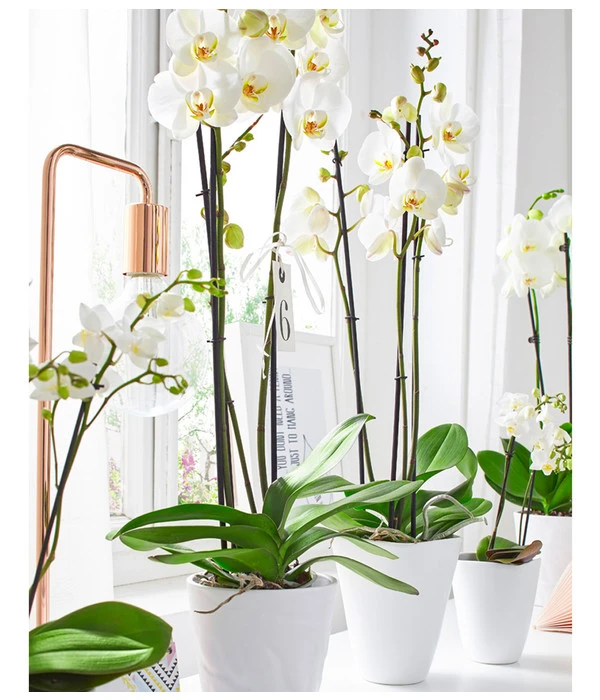 Sie gehören ohne Zweifel zu den beliebtesten Pflanzen auf unserer Fensterbank: die Phalaenopsis. Das hat auch seinen Grund, denn anmutig schweben die zahlreichen Blüten wie Schmetterlinge über der Blattbasis der Orchidee. Dabei ist sie überaus blühfreudig und robust, da die Pflanzen selbst bei wenig Pflege über mehrere Monate hinweg blühen. Gerade deshalb eignen sie sich auch hervorragend für ungeübte Orchideenfreunde. Schmetterlingsorchideen, wie sie auch oft genannt werden, gibt es in einer Vielzahl von Blütenfarben und -formen, von uni bis mehrfarbig, von zartem Pastellrosa bis hin zu kräftigem Violettrot. Elegant, grazil, exotisch – zarte Einzelpflanze oder prachtvolles Ensemble: Lassen Sie sich verzaubern von der einzigartigen Welt der Orchideen.
