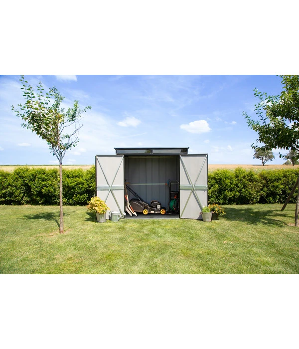 Ordnung ist das halbe Leben, was auch für die Arbeit im Garten gilt. Wenn Sie auf der Suche nach einer praktischen Möglichkeit sind, um Ihre Geräte und Utensilien im Außenbereich bequem zu verstauen, dann stellt das Spacemaker Gerätehaus aus massivem Stahlblech die ideale Lösung dar. Dank des Materials erweist es sich als sehr robust sowie stabil und dient somit als perfekter Aufbewahrungsort für Ihre Gartenwerkzeuge und vieles mehr. Außerdem garantiert Ihnen das hochwertige Material des Spacemaker Metallgerätehauses eine große Resistenz gegen Witterungseinflüsse und somit gegen Rost.