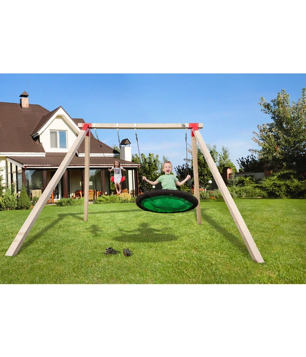 Im Sonnenschein draußen zu spielen ist für Kinder ein großes Vergnügen. Weka Spielgeräte eröffnen Ihnen zahllose Möglichkeiten, Ihren Kleinen im Sommer eine Freude zu machen. Mit unserer Weka Tabaluga Drachenschaukel holen Sie sich den Schaukelspaß in den eigenen Garten. Auf kompakter Fläche wird die aus Nadelholz gefertigte Schaukel einfach montiert, im Boden verankert und bietet Raum für ein Schaukelnest und ein klassisches Schaukelbrett, sodass auch zwei Kinder gleichzeitig spielen können. Das bis 150 kg belastbare Tabaluga Schaukelnest sorgt dabei für besonders viel Action beim Spielen.