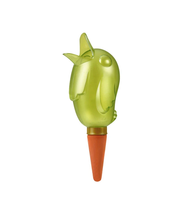 Die Vogelfigur besteht im oberen Teil aus einem durchsichtigen Kunststoffkörper, in den Sie ganz einfach durch den großen Schnabel Wasser in den Bauch füllen können. Das Wasser gelangt so nach und nach in den Tonkegel, den Sie in die Erde eines Blumentopfs stecken und der das Wasser aus dem Reservoir kontinuierlich und zuverlässig in den Boden leitet, so dass sich die Pflanze je nach Bedarf damit versorgen kann. Ein ebenso einfaches wie effizientes Prinzip, das zugleich dafür sorgt, dass die Erde niemals zu nass oder zu trocken ist. Und mit einem Blick auf den durchsichtigen Kunststoffkörper sehen Sie sofort, wann Sie wieder Wasser in den Wasserspeicher Bördy füllen müssen.